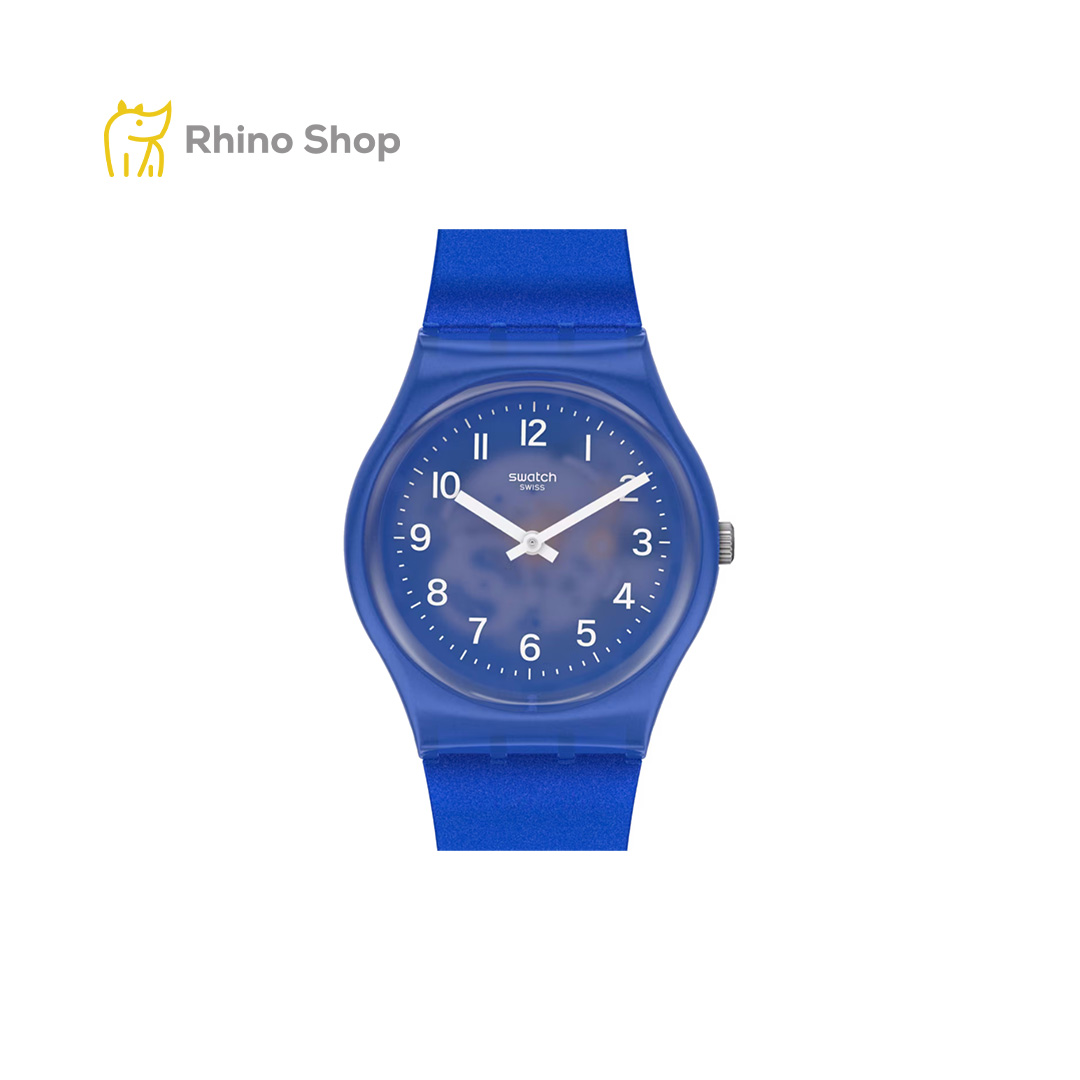 در طراحی ساعت سواچ مدل GL124، یک پوشش نیمهشفاف با افکت آنودایز شده به کار رفته که جلوهای متالیک و رنگینکمانی ایجاد میکند. ترکیب این پوشش خاص با رنگ آبی مات، ظاهری چشمگیر و منحصربهفرد به ساعت بخشیده است. هماهنگی کامل رنگ آبی در قاب، صفحه و بند باعث شده این مدل هویتی یکپارچه و جذاب داشته باشد که بهراحتی با استایلهای کژوال و اسپرت ست میشود.